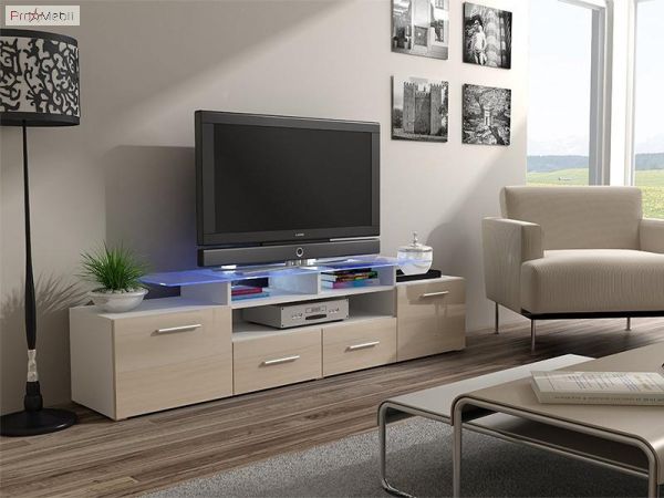Купити ТВ тумбу Evora білий матовий/кремовий глянець Cama недорого в Україні, Києві, Дніпрі