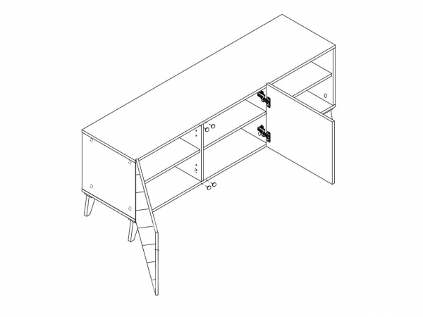 тумба оснащена двома закритими відділеннями з полицею всередині та двома відкритими нішами |