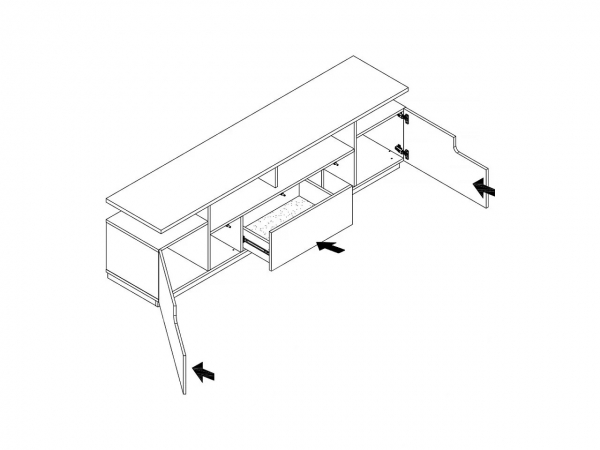 тумба оснащена однією висувною шухлядою, відкритими нішами та двома відділенням за дверцятами |