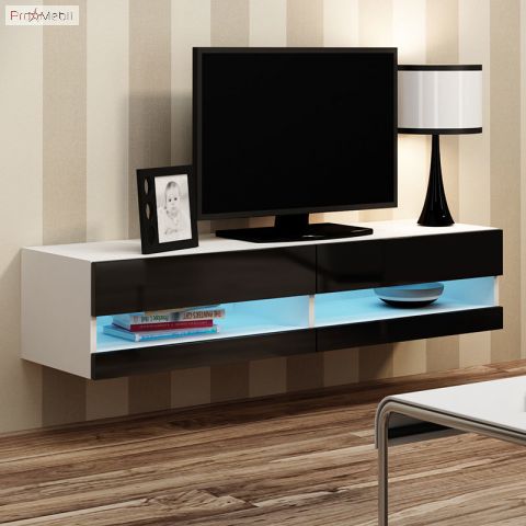Купити ТВ тумбу навісну 140 New Vigo білий матовий/чорний глянець Cama недорого в Україні, Києві, Дніпрі