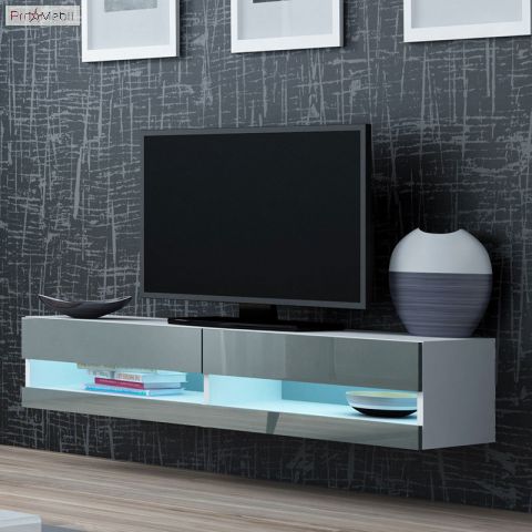 Купити ТВ тумбу навісну 140 New Vigo білий матовий/сірий глянець Cama недорого в Україні, Києві, Дніпрі