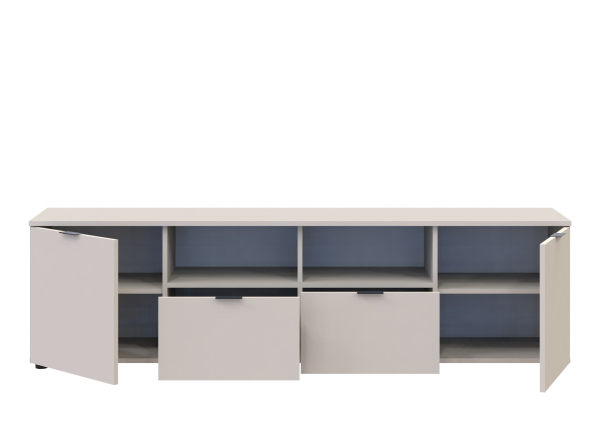 Тумба під телевізор Рон 4 Doros - це практичний і універсальний елемент меблів, який дозволить не тільки зі зручністю розмістити необхідну техніку, а й надасть додатковий простір для зберігання речей. ТВ тумба містить дві ніші, дві висувні шухляди та два закритих відділення. ТВ тумба – стильний та функціональний предмет меблів, для створення унікального інтер'єру у кімнаті.