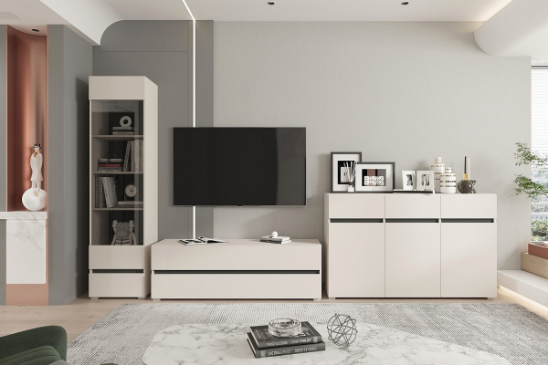 Сучасна ТВ тумба RTV2S Лондон Gerbor, що поєднує лаконічну естетику, функціональність і продуманий комфорт, гармонійно впишеться в інтер'єр вітальні, надаючи простору стриману елегантність і відчуття порядку. ТВ тумба містить дві висувні шухляди, що забезпечують зручне зберігання пультів, кабелів та інших дрібниць. Тумба привертає увагу сучасним мінімалізмом з продуманою ергономікою, простими формами і чіткою геометрією, м'яким поєднанням теплих і холодних відтінків, відсутністю звичних ручок, замінених витонченими фрезерованими виїмками, що додають фасадам чистоти ліній та оригінальності, а також практичними пластиковими ніжками Etera Plast і якісною фурнітурою. Лондон Gerbor - створений для тих, хто прагне до спокійного і затишного будинку, наповненого світлом, простором і стилем, де кожне повернення стає справжнім задоволенням.