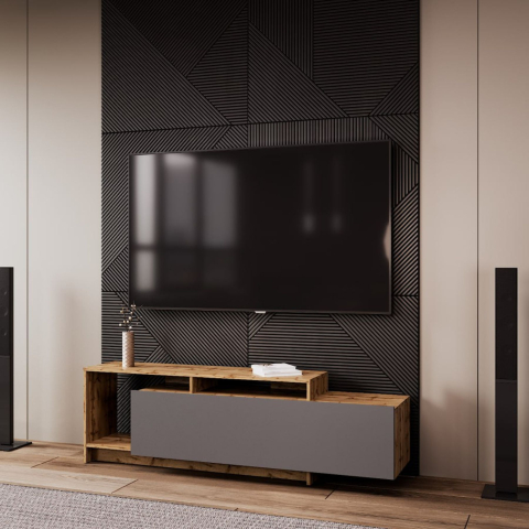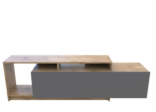 ТВ-тумба U2 Doros - це практичний і стильний елемент інтер'єру, який допомагає організувати простір навколо телевізора. Відкриті ніші ідеально підходять для розміщення мультимедійних пристроїв, таких як приставки, DVD-плеєри або роутери. Ці ніші забезпечують легкий доступ до техніки і сприяють хорошій вентиляції, запобігаючи перегріванню обладнання. Закрите відділення призначене для зберігання речей, які потрібно приховати від сторонніх очей: пульти, кабелі, диски або журнали. Це допомагає підтримувати порядок у кімнаті та позбавляє зайвого візуального шуму. Така тумба ідеально підходить для вітальні або спальні, де потрібне поєднання функціональності та естетики, забезпечуючи зручне зберігання і доступ до потрібних речей, при цьому зберігаючи акуратний зовнішній вигляд приміщення.