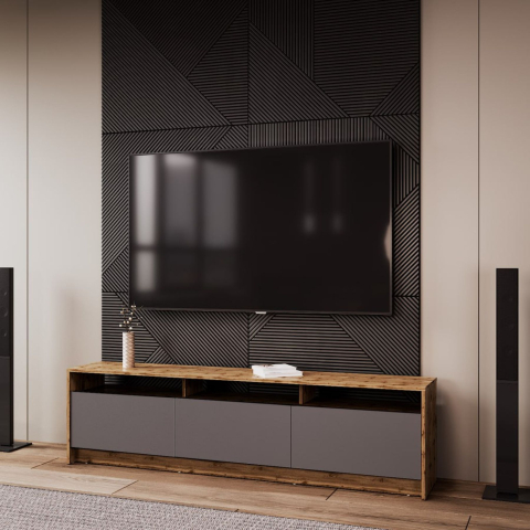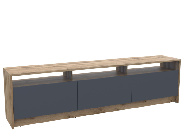 ТВ-тумба U3 Doros - це практичний і стильний елемент інтер'єру, який допомагає організувати простір навколо телевізора. Відкриті ніші ідеально підходять для розміщення мультимедійних пристроїв, таких як приставки, DVD-плеєри або роутери. Ці ніші забезпечують легкий доступ до техніки і сприяють хорошій вентиляції, запобігаючи перегріванню обладнання. Закриті відділення призначені для зберігання речей, які потрібно приховати від сторонніх очей: пульти, кабелі, диски або журнали. Це допомагає підтримувати порядок у кімнаті та позбавляє зайвого візуального шуму. Така тумба ідеально підходить для вітальні або спальні, де потрібне поєднання функціональності та естетики, забезпечуючи зручне зберігання і доступ до потрібних речей, при цьому зберігаючи акуратний зовнішній вигляд приміщення.