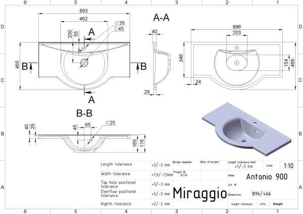 Характеристики Умивальник Anna 900 Matt Fancy Marble