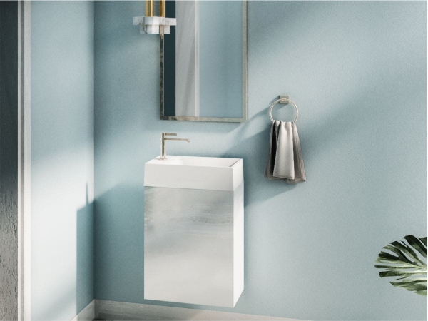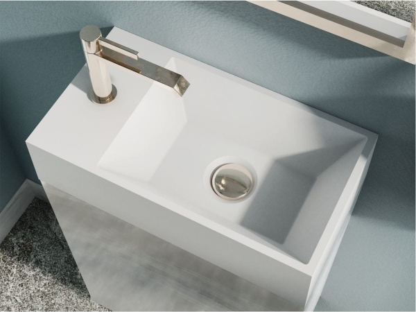 Прямокутний умивальник COPPER 400 MIRAGGIO з глибокою трапецієподібною чашею - зручний аксесуар для невеликої ванної кімнати. Раковина має накладний спосіб монтажу та легко встановлюється на тумбу або полицю у ванній кімнаті. Отвір під змішувач розміщено збоку, що дозволяє розмістити умивальник впритул до вертикальної поверхні. Заводський стандарт моделі передбачає відсутність переливу та має отвір під змішувач. Умивальник виготовлено з міцного, гарного та сучасного продукту – литого мармуру (штучного каменю) з Miramarble technology – 80% мармурової крихти та 20% полімерної смоли з домішками, зовнішня поверхня виробу покрита антибактеріальним гелем Gelcoat ISO NPG, який захищає виріб від бактерій та механічних пошкоджень. На кінцевому етапі полірується спеціальною пастою для отримання блискучої глянсової поверхні. Литий мармур відрізняється здатністю поглинати звуки води та приймати температуру довкілля, завдяки цьому умивальник безшумний, зручний та надійний. Умивальник у ванній кімнаті може бути не просто функціональним предметом, а й стильним аксесуаром. Ексклюзивна сантехніка MIRAGGIO - вражає своїм неперевершеним дизайном, передовими технологіями та бездоганною якістю, де кожен елемент створений для того, щоб забезпечити Вам комфорт, естетику та незабутній досвід використання.
