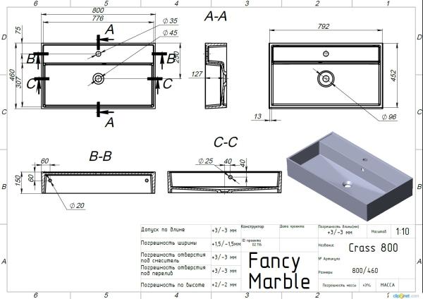 Характеристики Умивальник Crass 800 Matt Fancy Marble
