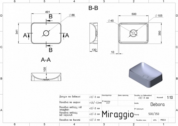 Купити умивальник Debora Miraggio в Україні, Києві, Дніпрі