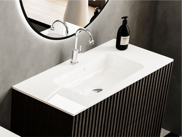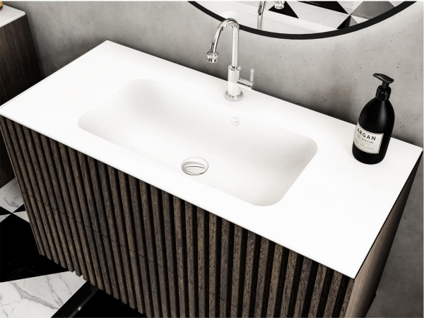Умивальник DELLA 1000 MIRAGGIO з прямокутною чашею втілення класики. Широкі крила з обох боків чаші дозволяють розташувати банне приладдя. Умивальник може бути встановлений накладним методом на тумбу або врізаний у полицю. Заводський стандарт моделі передбачає отвори під змішувач та перелив. Умивальник виготовлено з міцного, гарного та сучасного продукту – литого мармуру (штучного каменю) з Miramarble technology – 80% мармурової крихти та 20% полімерної смоли з домішками, зовнішня поверхня виробу покрита антибактеріальним гелем Gelcoat ISO NPG, який захищає виріб від бактерій та механічних пошкоджень. На кінцевому етапі полірується спеціальною пастою для отримання блискучої глянсової поверхні. Литий мармур відрізняється здатністю поглинати звуки води та приймати температуру довкілля, завдяки цьому умивальник безшумний, зручний та надійний. Умивальник у ванній кімнаті може бути не просто функціональним предметом, а й стильним аксесуаром. Ексклюзивна сантехніка MIRAGGIO - вражає своїм неперевершеним дизайном, передовими технологіями та бездоганною якістю, де кожен елемент створений для того, щоб забезпечити Вам комфорт, естетику та незабутній досвід використання.