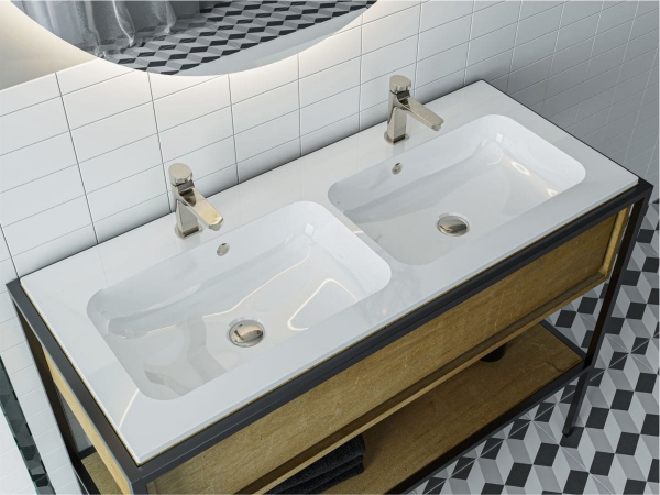 Подвійний умивальник DELLA 1100-2 MIRAGGIO з прямокутними чашами - чудове рішення для великої родини. Умивальник може бути встановлений накладним методом на тумбу або врізаний у полицю. Заводський стандарт моделі передбачає два отвори під змішувач та два під перелив. Умивальник виготовлено з міцного, гарного та сучасного продукту – литого мармуру (штучного каменю) з Miramarble technology – 80% мармурової крихти та 20% полімерної смоли з домішками, зовнішня поверхня виробу покрита антибактеріальним гелем Gelcoat ISO NPG, який захищає виріб від бактерій та механічних пошкоджень. На кінцевому етапі полірується спеціальною пастою для отримання блискучої глянсової поверхні. Литий мармур відрізняється здатністю поглинати звуки води та приймати температуру довкілля, завдяки цьому умивальник безшумний, зручний та надійний. Умивальник у ванній кімнаті може бути не просто функціональним предметом, а й стильним аксесуаром. Ексклюзивна сантехніка MIRAGGIO - вражає своїм неперевершеним дизайном, передовими технологіями та бездоганною якістю, де кожен елемент створений для того, щоб забезпечити Вам комфорт, естетику та незабутній досвід використання.
