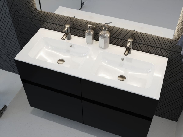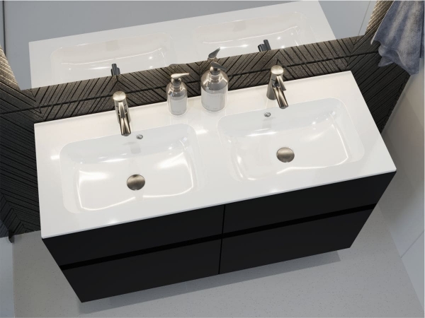 Подвійний умивальник DELLA 1200-2 MIRAGGIO з прямокутними чашами - чудове рішення для великої родини. Умивальник може бути встановлений накладним методом на тумбу або врізаний у полицю. Заводський стандарт моделі передбачає два отвори під змішувач та два під перелив. Умивальник виготовлено з міцного, гарного та сучасного продукту – литого мармуру (штучного каменю) з Miramarble technology – 80% мармурової крихти та 20% полімерної смоли з домішками, зовнішня поверхня виробу покрита антибактеріальним гелем Gelcoat ISO NPG, який захищає виріб від бактерій та механічних пошкоджень. На кінцевому етапі полірується спеціальною пастою для отримання блискучої глянсової поверхні. Литий мармур відрізняється здатністю поглинати звуки води та приймати температуру довкілля, завдяки цьому умивальник безшумний, зручний та надійний. Умивальник у ванній кімнаті може бути не просто функціональним предметом, а й стильним аксесуаром. Ексклюзивна сантехніка MIRAGGIO - вражає своїм неперевершеним дизайном, передовими технологіями та бездоганною якістю, де кожен елемент створений для того, щоб забезпечити Вам комфорт, естетику та незабутній досвід використання.