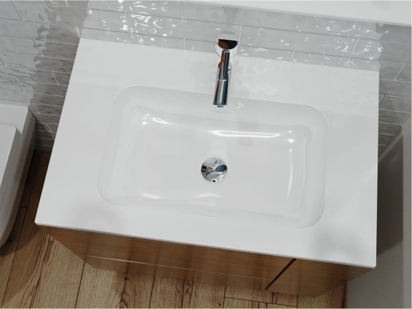 Компактний умивальник DELLA 700 MIRAGGIO із прямокутною чашею та акуратними крилами оптимальне рішення для ванної кімнати. Умивальник може бути встановлений накладним методом на тумбу або врізаний у полицю. Заводський стандарт моделі передбачає отвір під змішувач та перелив. Умивальник виготовлено з міцного, гарного та сучасного продукту – литого мармуру (штучного каменю) з Miramarble technology – 80% мармурової крихти та 20% полімерної смоли з домішками, зовнішня поверхня виробу покрита антибактеріальним гелем Gelcoat ISO NPG, який захищає виріб від бактерій та механічних пошкоджень. На кінцевому етапі полірується спеціальною пастою для отримання блискучої глянсової поверхні. Литий мармур відрізняється здатністю поглинати звуки води та приймати температуру довкілля, завдяки цьому умивальник безшумний, зручний та надійний. Умивальник у ванній кімнаті може бути не просто функціональним предметом, а й стильним аксесуаром. Ексклюзивна сантехніка MIRAGGIO - вражає своїм неперевершеним дизайном, передовими технологіями та бездоганною якістю, де кожен елемент створений для того, щоб забезпечити Вам комфорт, естетику та незабутній досвід використання.