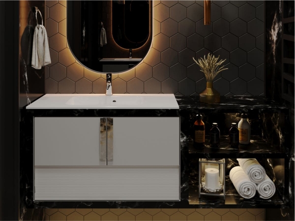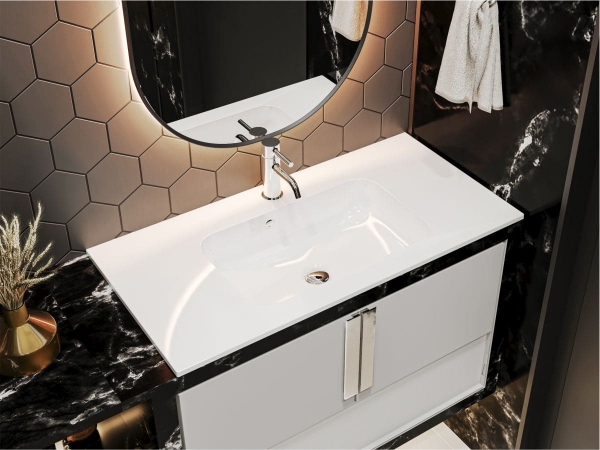 Компактний умивальник DELLA 900 MIRAGGIO із прямокутною чашею та широкими крилами оптимальне рішення для ванної кімнати. Умивальник може бути встановлений накладним методом на тумбу або врізаний у полицю. Заводський стандарт моделі передбачає отвір під змішувач та перелив. Умивальник виготовлено з міцного, гарного та сучасного продукту – литого мармуру (штучного каменю) з Miramarble technology – 80% мармурової крихти та 20% полімерної смоли з домішками, зовнішня поверхня виробу покрита антибактеріальним гелем Gelcoat ISO NPG, який захищає виріб від бактерій та механічних пошкоджень. На кінцевому етапі полірується спеціальною пастою для отримання блискучої глянсової поверхні. Литий мармур відрізняється здатністю поглинати звуки води та приймати температуру довкілля, завдяки цьому умивальник безшумний, зручний та надійний. Умивальник у ванній кімнаті може бути не просто функціональним предметом, а й стильним аксесуаром. Ексклюзивна сантехніка MIRAGGIO - вражає своїм неперевершеним дизайном, передовими технологіями та бездоганною якістю, де кожен елемент створений для того, щоб забезпечити Вам комфорт, естетику та незабутній досвід використання.