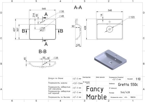 Характеристики Умивальник Greta 550 Fancy Marble
