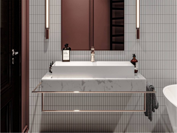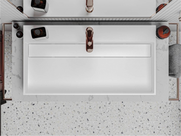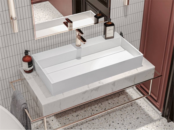 Прямокутна раковина ISLAND 800 MIRAGGIO - подовжений варіант для великої ванної кімнати. Традиційна висота бортів, прямі кути, чіткі лінії та поличка біля змішувача, де зручно розміщуються косметичні засоби, - утворюють оптимальне рішення для ванної кімнати. Умивальник передбачає накладний або врізний тип монтажу. Отвір під злив прихований декоративною накладкою. Заводський стандарт моделі передбачає відсутність переливу та має один отвір під змішувач по центру виробу. Умивальник виготовлено з міцного, гарного та сучасного продукту – литого мармуру (штучного каменю) з Miramarble technology – 80% мармурової крихти та 20% полімерної смоли з домішками, зовнішня поверхня виробу покрита антибактеріальним гелем Gelcoat ISO NPG, який захищає виріб від бактерій та механічних пошкоджень. На кінцевому етапі полірується спеціальною пастою для отримання блискучої глянсової поверхні. Литий мармур відрізняється здатністю поглинати звуки води та приймати температуру довкілля, завдяки цьому умивальник безшумний, зручний та надійний. Умивальник у ванній кімнаті може бути не просто функціональним предметом, а й стильним аксесуаром. Ексклюзивна сантехніка MIRAGGIO - вражає своїм неперевершеним дизайном, передовими технологіями та бездоганною якістю, де кожен елемент створений для того, щоб забезпечити Вам комфорт, естетику та незабутній досвід використання.