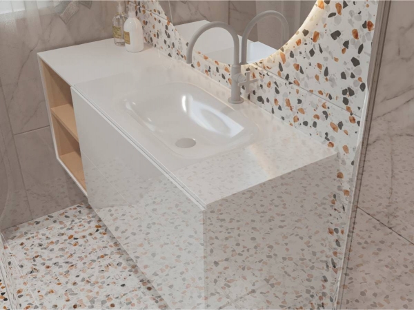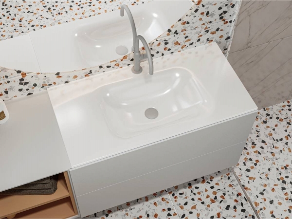 Умивальник JESSEL 900 MIRAGGIO оптимальне рішення для маленької ванної кімнати. Плавні лінії прямокутної чаші перешкоджають розбризкуванню води, крила дозволяють зручно розмістити косметичні засоби. Раковина має кілька типів монтажу накладний та врізний. Заводський стандарт моделі передбачає відсутність переливу та має один отвір під змішувач по центру виробу. Умивальник виготовлено з міцного, гарного та сучасного продукту – литого мармуру (штучного каменю) з Miramarble technology – 80% мармурової крихти та 20% полімерної смоли з домішками, зовнішня поверхня виробу покрита антибактеріальним гелем Gelcoat ISO NPG, який захищає виріб від бактерій та механічних пошкоджень. На кінцевому етапі полірується спеціальною пастою для отримання блискучої глянсової поверхні. Литий мармур відрізняється здатністю поглинати звуки води та приймати температуру довкілля, завдяки цьому умивальник безшумний, зручний та надійний. Умивальник у ванній кімнаті може бути не просто функціональним предметом, а й стильним аксесуаром. Ексклюзивна сантехніка MIRAGGIO - вражає своїм неперевершеним дизайном, передовими технологіями та бездоганною якістю, де кожен елемент створений для того, щоб забезпечити Вам комфорт, естетику та незабутній досвід використання.