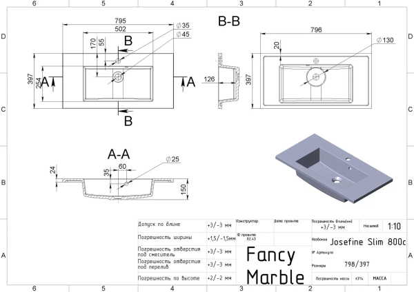 Характеристики Умивальник Josefine Slim 800C Matt Fancy Marble