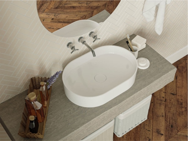 Шалено гарна овальна раковина KIRA MIRAGGIO стане вашою улюбленицею! Прості лінії, тонкі стінки чаші створюють досконалий образ. Впевнені, що ця модель стане особливістю вашої ванної кімнати. Раковина передбачає окремий або настінний змішувач. Умивальник має накладний тип монтажу. Отвір під слив прихований декоративною накладкою. Заводський стандарт моделі не передбачає отвір під змішувач та перелив. Умивальник виготовлено з міцного, гарного та сучасного продукту – литого мармуру (штучного каменю) з Miramarble technology – 80% мармурової крихти та 20% полімерної смоли з домішками, зовнішня поверхня виробу покрита антибактеріальним гелем Gelcoat ISO NPG, який захищає виріб від бактерій та механічних пошкоджень. На кінцевому етапі полірується спеціальною пастою для отримання блискучої глянсової поверхні. Литий мармур відрізняється здатністю поглинати звуки води та приймати температуру довкілля, завдяки цьому умивальник безшумний, зручний та надійний. Умивальник у ванній кімнаті може бути не просто функціональним предметом, а й стильним аксесуаром. Ексклюзивна сантехніка MIRAGGIO - вражає своїм неперевершеним дизайном, передовими технологіями та бездоганною якістю, де кожен елемент створений для того, щоб забезпечити Вам комфорт, естетику та незабутній досвід використання.