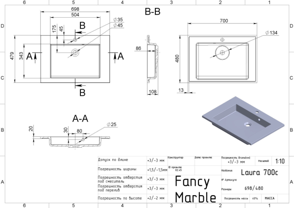 Характеристики Умивальник Laura 700 Matt Fancy Marble