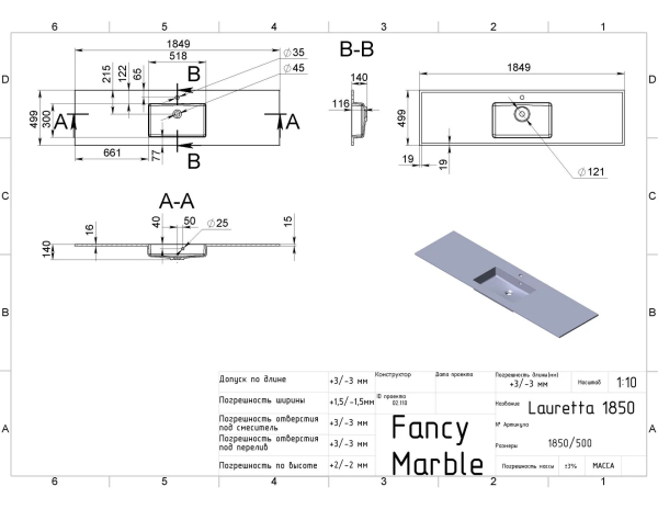 Характеристики Умивальник Lauretta 1850 C Fancy Marble