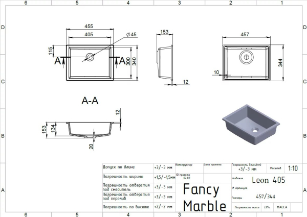 Характеристики Умивальник Leon 405 Matt Fancy Marble