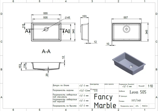 Характеристики Умивальник Leon 505 Matt Fancy Marble