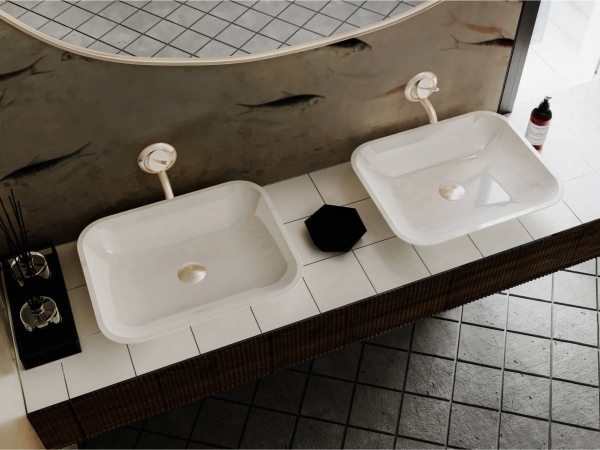 Стильна раковина MARTEEN MIRAGGIO ідеальний аксесуар модної ванної кімнати. Широка чаша з невисокими бортами не обмежує простір та ефективно збирає потоки води. Раковина передбачає окремий або настінний змішувач. Умивальник має накладний тип монтажу. Заводський стандарт моделі не передбачає отвори під змішувач та перелив. Умивальник виготовлено з міцного, гарного та сучасного продукту – литого мармуру (штучного каменю) з Miramarble technology – 80% мармурової крихти та 20% полімерної смоли з домішками, зовнішня поверхня виробу покрита антибактеріальним гелем Gelcoat ISO NPG, який захищає виріб від бактерій та механічних пошкоджень. На кінцевому етапі полірується спеціальною пастою для отримання блискучої глянсової поверхні. Литий мармур відрізняється здатністю поглинати звуки води та приймати температуру довкілля, завдяки цьому умивальник безшумний, зручний та надійний. Умивальник у ванній кімнаті може бути не просто функціональним предметом, а й стильним аксесуаром. Ексклюзивна сантехніка MIRAGGIO - вражає своїм неперевершеним дизайном, передовими технологіями та бездоганною якістю, де кожен елемент створений для того, щоб забезпечити Вам комфорт, естетику та незабутній досвід використання.