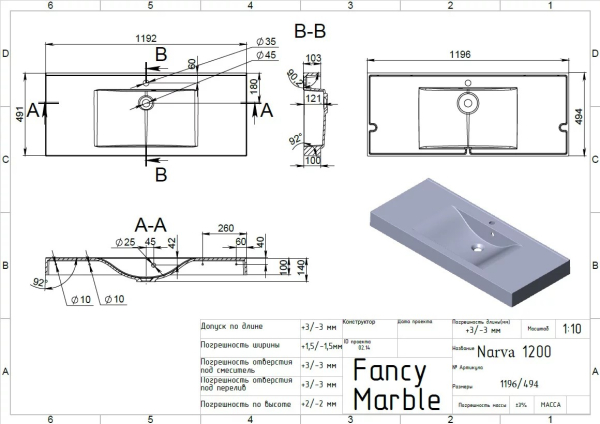 Характеристики Умивальник Narva 1200 Fancy Marble