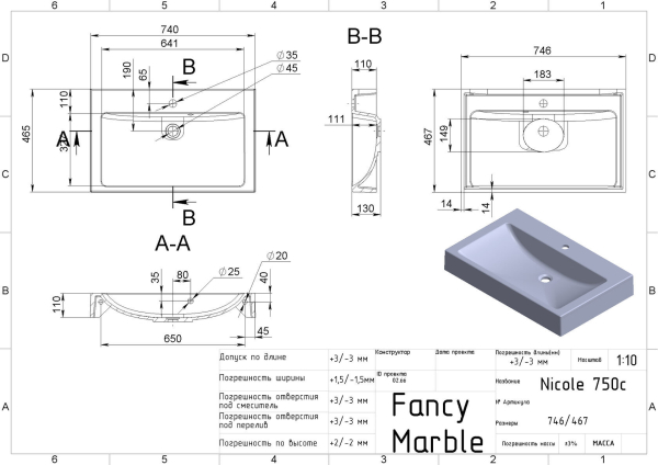 Характеристики Умивальник Nicole 750 Fancy Marble