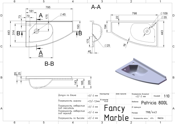Характеристики Умивальник Patricia 800 L Fancy Marble