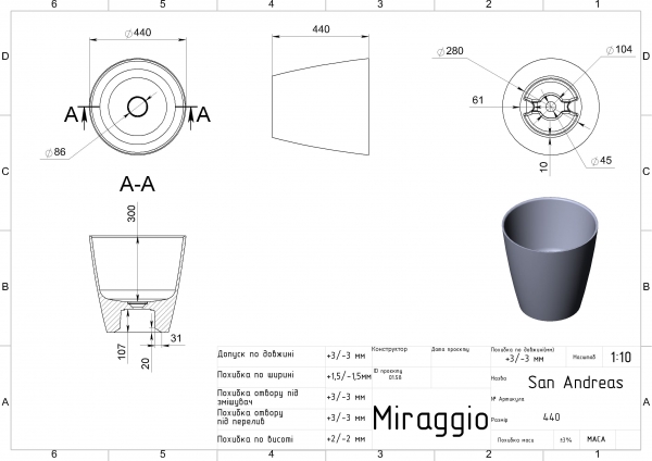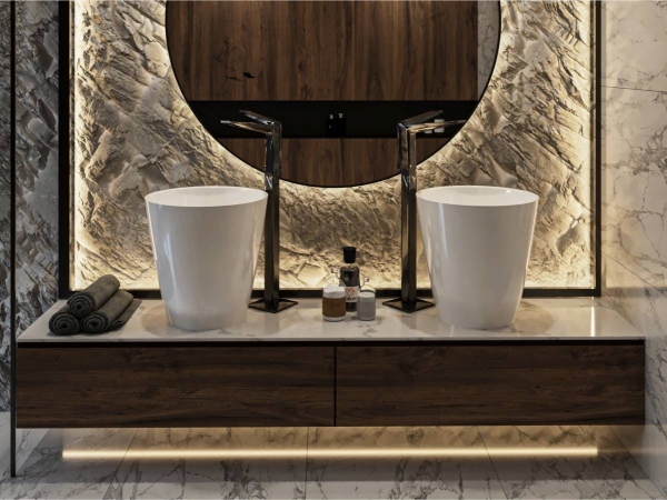 Умивальник SAN ANDREAS MIRAGGIO створений для сміливих дизайнерських рішень. Вертикальна глибока лійкоподібна чаша задає тон загальному стилю ванної кімнати і не залишиться поза увагою. Умивальник має накладний тип монтажу. Отвір під слив прихований декоративною накладкою. Заводський стандарт моделі не передбачає отвори під змішувач та перелив. Умивальник виготовлено з міцного, гарного та сучасного продукту – литого мармуру (штучного каменю) з Miramarble technology – 80% мармурової крихти та 20% полімерної смоли з домішками, зовнішня поверхня виробу покрита антибактеріальним гелем Gelcoat ISO NPG, який захищає виріб від бактерій та механічних пошкоджень. На кінцевому етапі полірується спеціальною пастою для отримання блискучої глянсової поверхні. Литий мармур відрізняється здатністю поглинати звуки води та приймати температуру довкілля, завдяки цьому умивальник безшумний, зручний та надійний. Умивальник у ванній кімнаті може бути не просто функціональним предметом, а й стильним аксесуаром. Ексклюзивна сантехніка MIRAGGIO - вражає своїм неперевершеним дизайном, передовими технологіями та бездоганною якістю, де кожен елемент створений для того, щоб забезпечити Вам комфорт, естетику та незабутній досвід використання.
