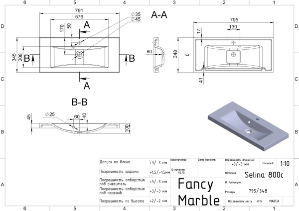 Характеристики Умивальник Selina 800 Matt Fancy Marble