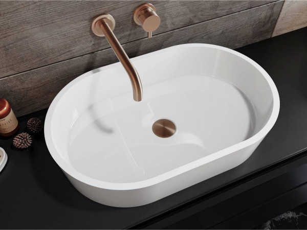 Овальний умивальник SORRENTO MIRAGGIO відмінне рішення для ванни у сучасному стилі. Середньої товщини стінки раковини, скошені на дно, створюють ефект широкої об'ємної чаші. При цьому умивальник не займає багато місця. Раковина передбачає окремий або настінний змішувач. Умивальник має накладний тип монтажу. Заводський стандарт моделі не передбачає отвори під змішувач та перелив. Умивальник виготовлено з міцного, гарного та сучасного продукту – литого мармуру (штучного каменю) з Miramarble technology – 80% мармурової крихти та 20% полімерної смоли з домішками, зовнішня поверхня виробу покрита антибактеріальним гелем Gelcoat ISO NPG, який захищає виріб від бактерій та механічних пошкоджень. На кінцевому етапі полірується спеціальною пастою для отримання блискучої глянсової поверхні. Литий мармур відрізняється здатністю поглинати звуки води та приймати температуру довкілля, завдяки цьому умивальник безшумний, зручний та надійний. Умивальник у ванній кімнаті може бути не просто функціональним предметом, а й стильним аксесуаром. Ексклюзивна сантехніка MIRAGGIO - вражає своїм неперевершеним дизайном, передовими технологіями та бездоганною якістю, де кожен елемент створений для того, щоб забезпечити Вам комфорт, естетику та незабутній досвід використання.