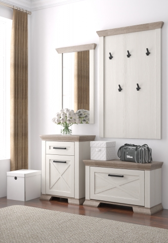 Вішак Марсель Gerbor у французькому кантрі стилі, здатний захопити дух і змінити інтер'єр передпокою. Вішак обладнаний п'ятьма металевими гачками для навішування одягу. Меблі вражають вишуканим поєднанням стилю і функціональності; поєднанням світлих фасадів "ясен сніжний", що додає свіжості та візуально розширює простір, з темними елементами корпусу "дуб сонома трюфель", що додає глибину та акцентує увагу на витончених деталях; декоративними шпросами; фірмовими комплектуючими. Модульна система Марсель Gerbor подарує свободу для творчих рішень, де кожна хвилина, проведена вдома, стане більш затишною і стильною, створюючи простір, де хочеться перебувати знову і знову.