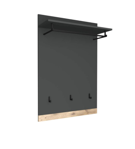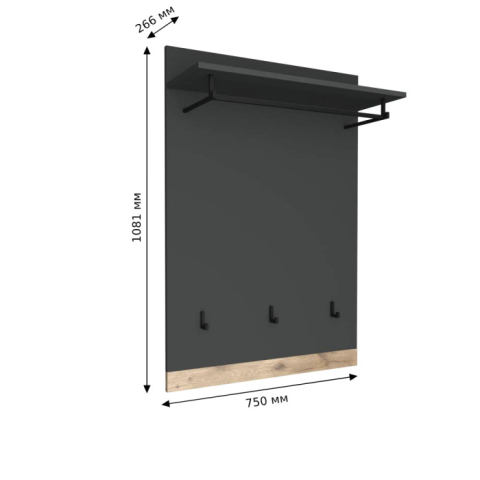 Вішак навісний Модена Сокме створений для оформлення передпокою в сучасному стилі, де поєднуються елегантність і вишуканість, перетворюючи простір в затишне і гостинне місце зустрічей з близькими. Вішалка обладнана полицею для головних уборів, тремпелем для вішалок і трьома гачками, що дозволяє зручно розмістити одяг і аксесуари, зберігаючи порядок у передпокої. Вішалка виділяється: витонченим дизайном; гармонією антрацитового відтінку і деревної текстури; якісною фурнітурою. Модена Сокме - меблі, які поєднують практичність і стиль, надаючи будинку затишок і сучасний характер.