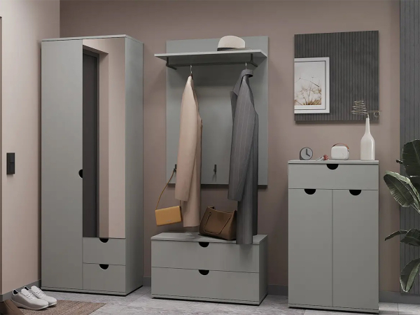 Вішалка навісна з дзеркалом Ельба Сокме ідеально підходить для створення спокійної і вишуканої атмосфери в передпокої. Вішалка настінна обладнана полицею для головних уборів, тремпелем для вішалок, трьома гачками і дзеркальною панеллю, яка додає простору глибину і візуальну легкість. Колекція захоплює: лаконічними, але виразними формами; плавними лініями і м'якими пропорціями; гармонійним однотонним сірим оформленням, що створює відчуття затишку і цілісності; продуманою фурнітурою. Ельба Сокме стане стильним і функціональним доповненням вашого передпокою, створюючи гармонійний, затишний і збалансований простір, де кожен день починається з відчуття порядку і спокою.