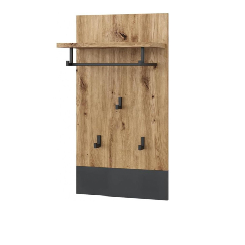 Вішалка навісна Селін антрацит Сокме - сучасне і функціональне рішення, в якому продуманий до дрібниць дизайн поєднує зручність, естетику і затишок, створюючи з перших хвилин відчуття організованого, стильного і гостинного простору, де кожна деталь допомагає підтримувати порядок і робить повсякденне використання максимально комфортним. Вішалка обладнана полицею для головних уборів, тремпелем для вішалок і трьома гачками. Меблі привертають увагу своїм лаконічним сучасним дизайном, який органічно вписується в будь-який інтер'єр; чіткими формами і виразними лініями; контрастним поєднанням темних антрацитових і золотисто-деревних відтінків; а також фірмовою фурнітурою. Елегантна і функціональна, передпокій Селін Сокме привносить в інтер'єр відчуття сучасного затишку, об'єднуючи порядок, естетику і душевне тепло в єдиному просторі.