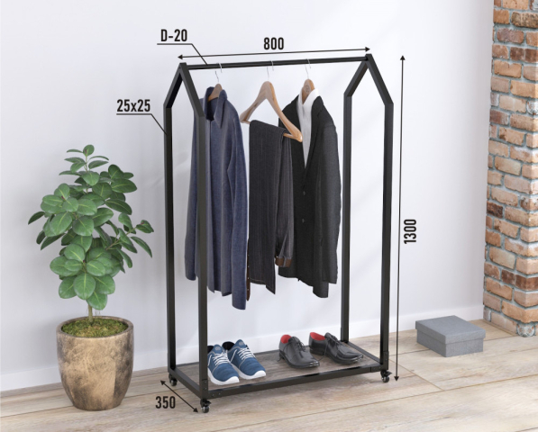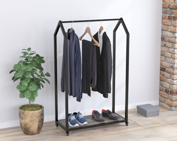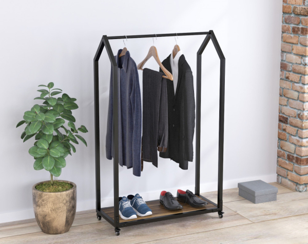 Вішалка-стійка для одягу SDO 4 Loft Design - виразний акцент, який одразу привертає погляд. Її силует із легкою архітектурною ноткою немов заново окреслює простір, додаючи інтер’єру характеру та відчуття свободи. Вона однаково доречна вдома, у стильній студії або в просторі, де важлива подача - шоурумі, офісі чи фотозоні. Головна особливість - форма каркаса «будиночком». Вона робить вішалку візуально легкою, майже повітряною, при цьому зберігаючи чітку геометрію та сучасний характер. Такий дизайн не просто прикрашає інтер'єр, а створює настрій - живий, відкритий і трохи творчий. Практичність тут продумана до дрібниць. Надійні коліщатка дозволяють легко змінювати розташування стійки - переміщати її разом з одягом, адаптуючи простір під поточні завдання: від примірки до зйомки або демонстрації колекції. Металевий каркас із міцного профілю покритий матовою чорною порошковою фарбою, стійкою до зносу та такою, що зберігає охайний зовнішній вигляд. Нижня полиця з ЛДСП додає функціональності, залишаючись при цьому візуально легкою. Вона підходить для зберігання взуття, коробок або аксесуарів, а різноманітність декорів - від теплих деревних відтінків до глибокого чорного - допомагає точно вписати модель в інтер'єр. Вішалка-стійка для одягу SDO 4 Loft Design стає частиною атмосфери та задає тон всьому простору.