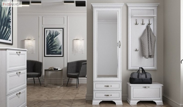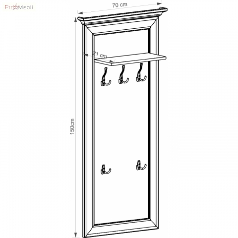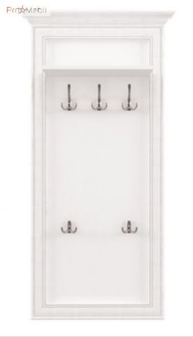 Вішак навісний Tiffany Mebel Bos для розміщення верхнього одягу. Вішак відрізняється функціональністю і конструктивною варіативністю, обладнаний п’ятьма гачками для верхнього одягу і полицею для головних уборів. Цей предмет інтер'єру допоможе зберегти вільний простір у вашому передпокої. Корпус і фасадні частини виготовляються з високоякісного ламінованого ДСП з елементами з МДФ в ніжному відтінку вудлайн крем зі структурою, що імітує деревину. Торцеві поверхні всіх внутрішніх і зовнішніх елементів виробів облицьовані крайкою ABS, надаючи меблям завершений гарний і доглянутий вигляд. Колекція привертає увагу вишуканим, продуманим до дрібниць дизайном; світлим відтінком зі структурою деревини; витонченими рамковими фасадами з блискучою патиною; масивними декоративними карнизами, що прикрашають верх виробів; фірмовими комплектуючими. Тіффані Меблі Бос - вражаюча, непідвладна часу і завжди модна колекція, яка розкішно доповнить різний за призначенням інтер'єр, створить атмосферу тепла і затишку.