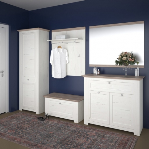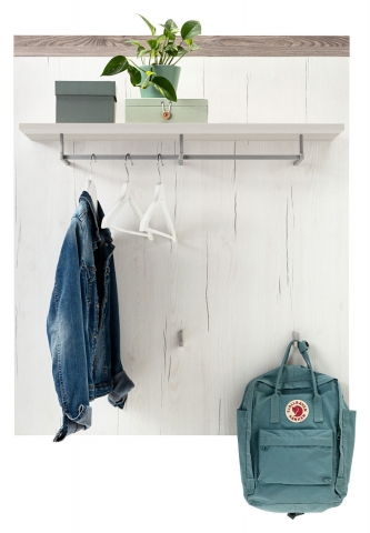Сучасний та стильний вішак Версаль Сокме створить приємну атмосферу та стане родзинкою у Вашому передпокої. Вішалка настінна обладнана полицею для головних уборів, тремпелем для вішаків та трьома гачками. Колекція привертає увагу: оригінальним дизайном; простотою форм; вишуканим поєднанням сосна арктична / мадагаскар нельсон; фірмовими комплектуючими. Меблі Версаль Сокме втілення вишуканості та елегантності.