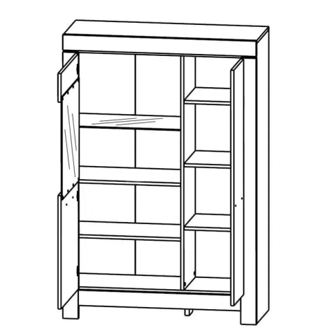 вітрина містить два закритих відділення: за лівими дверима розташовані три полиці, одна з яких скляна, в правому відділенні встановлено три полиці |