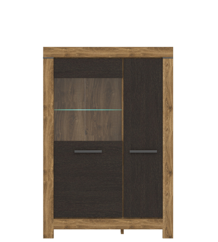 Вітрина REG1D1W Белен Gerbor перетворить приміщення, візуально розширить простір, додасть легкості і унікальності, створить бездоганність і вишуканість інтер'єру. Вітрина чудово доповнить інтер'єр вітальні, їдальні і кухні, і допоможе в зберіганні: посуду, нагород і призів, статуеток, книг, сувенірів і різних експонатів. Вітрина містить два закритих відділення: за лівими дверима зі вставкою з загартованого скла розташовані три полиці, одна з яких скляна з підсвіткою, в правому відділенні встановлено три полиці. Корпус і фасадні частини виробів виготовлені з ламінованого ДСП в контрастному кольоровому поєднанні: корпус - дуб травіата, фасад - дуб болотний коричневий. Меблі Белен Gerbor приваблюють: строгими геометричними формами; гладкими фасадами з потовщеним корпусом і боковинами, плавно перетікаючими в стійкі ніжки; металевими вставками і довгастими металевими ручками, що підкреслюють строгу геометрію форм; вбудованим підсвічуванням скляних полиць; фірмовими комплектуючими: петлі з функцією тихого закриття забезпечують максимальну зручність у використанні. Меблі Белен Гербор призначені для тих, хто цінує сучасний дизайн і функціональні рішення, створюючи ергономічний і стильний простір у вітальні.