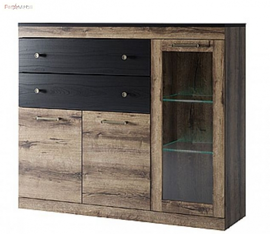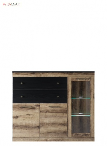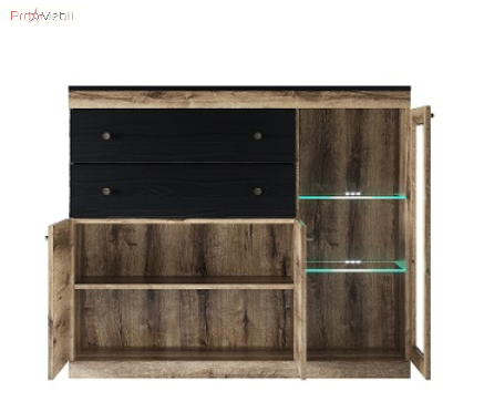 Вітрина 2D1W2S Jagger Mebel Bos - це містка практична шафа-буфет, яка вдало поєднує в собі функціональність і модний стильний дизайн і призначена для облаштування вишуканої вітальні або їдальні. У вашому розпорядженні закрите відділення з полицею всередині, дві висувні шухляди і відділення з фасадом зі вставкою з прозорого скла і двома скляними поличками всередині, які додатково можуть комплектуватися енергозберігаючим світлодіодним підсвічуванням. Корпус і фасадні частини виготовлені з якісного ламінованого ДСП, в чудовому поєднанні легкого древесного малюнка «дуб монастирський» з чорними вставками декору. Меблі Джаггер Mebel Bos привертають увагу своїм стилем; оригінальним поєднанням кольорів; дизайнерськими металевими ручками під бронзу двох видів; фірмовими комплектуючими: завіси з функцією тихого закриття і кульковими направляючими повного висування забезпечують максимальний комфорт у використанні. Колекція Джаггер Меблі Бос об'єднає ритм повсякденного життя з домашнім затишком, створюючи новий подих свіжості в атмосфері Вашого будинку.