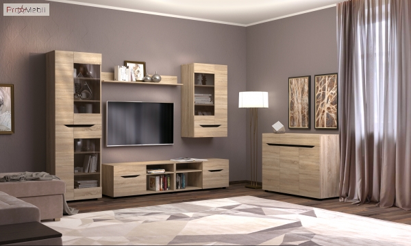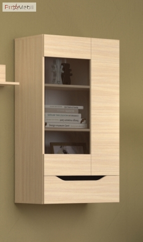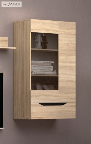 Вітрина навісна Аякс Майстер Форм призначена для облаштування вишуканої вітальні або їдальні. Вітрина містить одне закрите відділення, зі вставкою з бронзового загартованого скла і одну висувну шухляду. Для зручності вітрина може бути як правосторонньою, так і лівосторонньою. Корпус і фасадні частини виготовлені з якісного ламінованого ДСП, в безпрограшному поєднанні світлих і темних відтінків: дуб молочний або дуб сонома з венге магія. Торцеві поверхні всіх внутрішніх і зовнішніх елементів виробів облицьовані пластиковою кромкою, надаючи меблям завершений гарний і доглянутий вигляд. Меблі Аякс Майстер Форм привертають увагу своїм легким і сучасним дизайном; простими прямокутними формами; застосуванням двокольорової гами; відсутністю традиційних ручок для відкривання, їх роль виконують виїмки в фасаді, декоровані з внутрішнього боку контрастною планкою; фірмовими комплектуючими: телескопічними напрямними і фірмовими завісами, які забезпечують максимальний комфорт у використанні. Меблі Аякс Майстер Форм чудово прикрасять інтер'єр Вашого будинку і дозволять підкреслити Вашу індивідуальність.