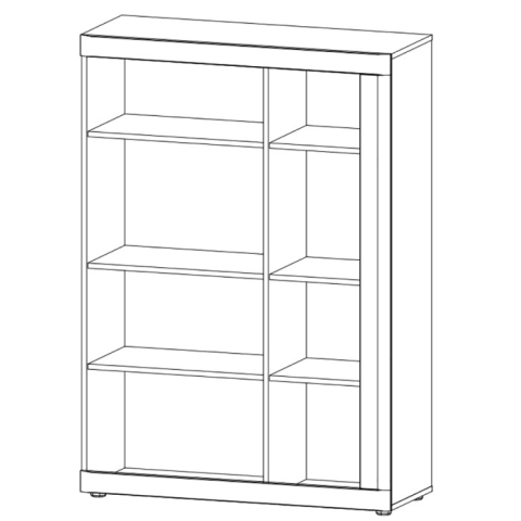 вітрина містить одне закрите відділення з трьома полицями всередині і три відкриті полиці |