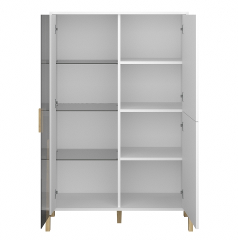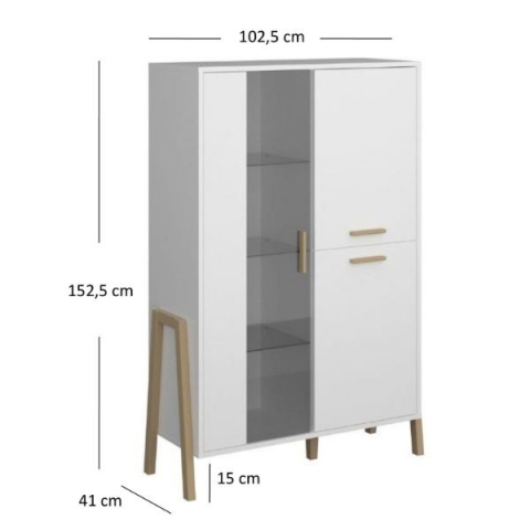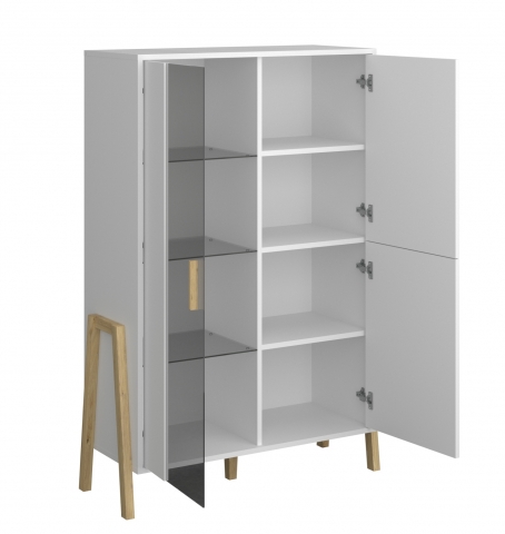Чарівна вітрина низька 1W2D Бель біла ВМВ, яка впишеться практично в будь-який інтер'єр вітальні, спальні, молодіжної кімнати та домашнього кабінету, ставши джерелом натхнення і надавши інтер'єру оригінального характеру. Вітрина містить три закритi відділення: за лівими дверима зі вставкою із тонованого скла розташовані три скляні полиці, в інших відділеннях знаходиться по одній полиці. Меблі привертають увагу своїм неординарним дизайном та цікавою формою; незвичайною асиметричною композицією; первозданним білим кольором; подовженими зручними ручками і високими ніжками, що виступають з боків, виготовленими з натурального дерева; фірмовими комплектуючими. Колекція Belle VMV порадує всіх любителів інноваційних ідей, а також сучасних, оригінальних та елегантних інтер'єрів, тих, хто цінує розкіш та комфорт у своєму будинку.