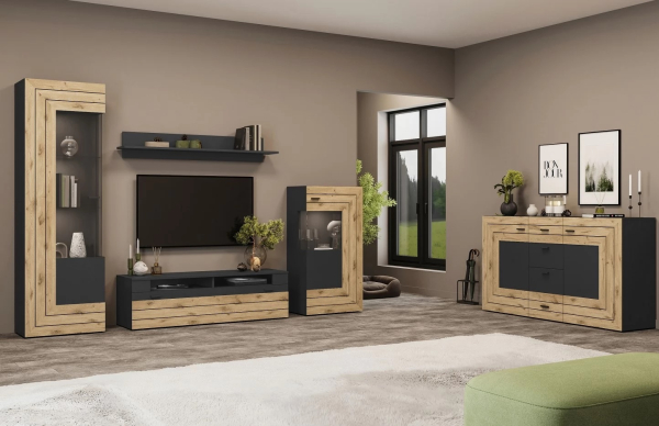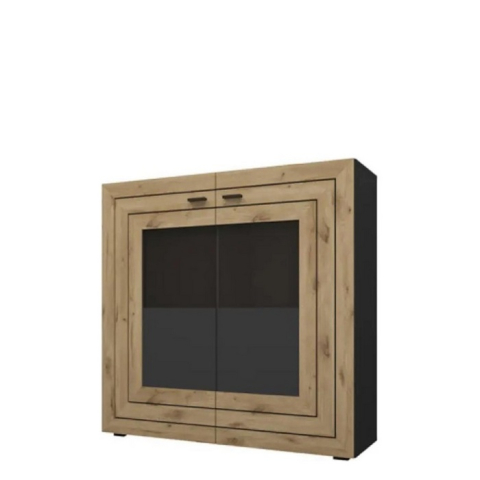 Елегантна вітрина низька 2Д Джейкоб антрацит Сокме, в якій виразний дизайн і гармонія контрастів втілюються в сучасному образі затишку, стилю і бездоганного смаку. Вітрина містить два закритих відділення з поличками всередині для зручного зберігання і раціональної організації простору. Родзинкою є витонченість і елегантність; вишуканий баланс холодної виразної строгості з природною натуральністю дерева; прямі лінії і строгі геометричні форми; акуратні тонкі ручки, чорного кольору; міцна основа з невеликими ніжками, що сприяє максимальній стійкості; високоякісна фурнітура. Джейкоб Сокме – меблі з характером, в яких продуманий кожен штрих, створюючи простір, де сучасний затишок поєднується з бездоганним смаком і кожна деталь відображає витончене почуття стилю.