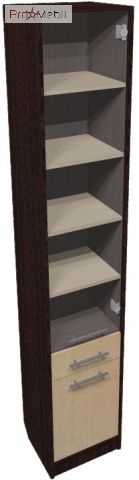 Вітрина П 400 скло права Аліса Roko - місткий елемент Вашого інтер'єру, яка має чотири вбудовані полиці, одна висувна шухляда та дверцята. Ця модель представлена в різних кольорах, щоб Ви могли підібрати максимально гармонійний для Вашого інтер'єру відтінок.
