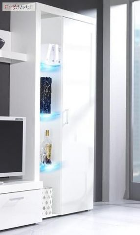 Вітрина висока reg 2 Samba біла Cama - відмінний предмет для облаштування сучасної вітальні. Вітрина складається із закритого відділення з глянцевими дверима і трьома місткими полицями всередині, а також чотирьох відкритих скляних полиць, на яких органічно будуть виглядати декоративні речі, сувеніри, фотографії та інші приємні дрібниці, і які можуть бути додатково укомплектовані кольоровим LED-підсвічуванням (біле, блакитне, червоне або зелене) або кольорове RGB-підсвічування (16 кольорів) з пультом керування, за допомогою якого можна змінювати кольори, залежно від Ваших переваг на даний момент. Корпус виконаний з ДСП високої якості "білого матового" кольору. Фасади виконані з МДФ у кольорі "білого глянцю". Характерними особливостями меблів Самба Cama є неповторний дизайн, виконаний в стилі мінімалізму і конструктивізму, стильні і зручні подовгуваті пластикові ручки, надійна і практична фурнітура від німецького виробника Hettich забезпечує максимально комфортне використання, високоміцне загартоване скло товщиною 8 мм, кольорове LED-підсвічування надає особливу атмосферу і настрій всієї композиції. Широкий асортимент меблів Samba Cama дозволяє створити унікальний, стильний і сучасний інтер'єр вітальні.